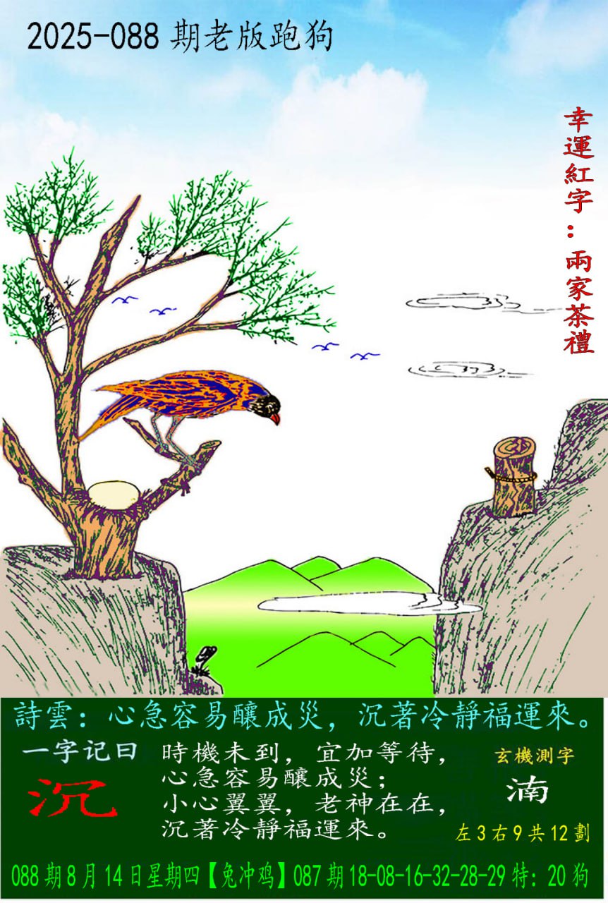 088期老版跑狗一字記之曰:【沉】 玄機測字:《湳》