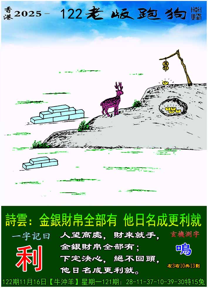 122期老版跑狗一字記之曰:【利】 玄機測字:《鳴》