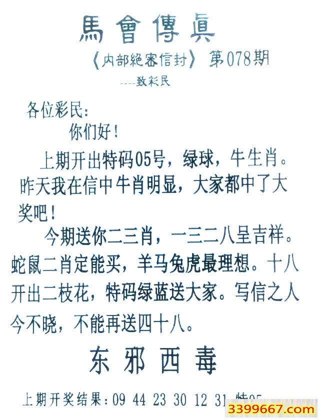078期:首发推荐:≮馬會傳眞≯→(香港正版)