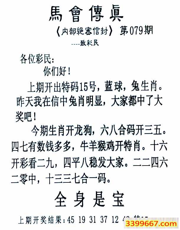 079期:首发推荐:≮馬會傳眞≯→(香港正版)