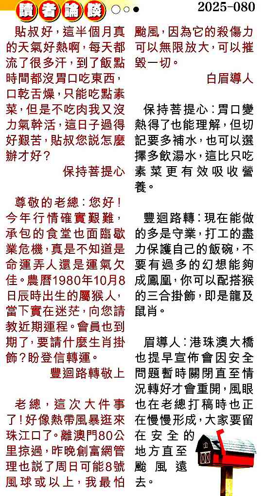 080期:彩民推荐贴信读者论坛