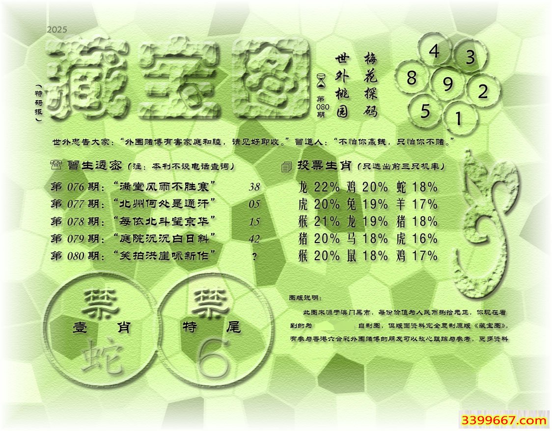 080期藏寶圖 新:真诚驭鹤乘鸾去 老:笑拍洪崖咏新作 禁:蛇 禁:6尾 玄機字:《息》