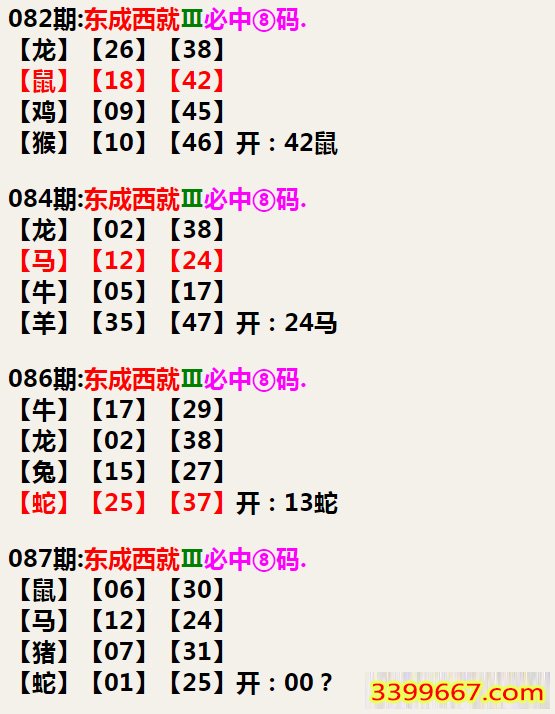 087期:东成西就Ⅲ必中⑧码