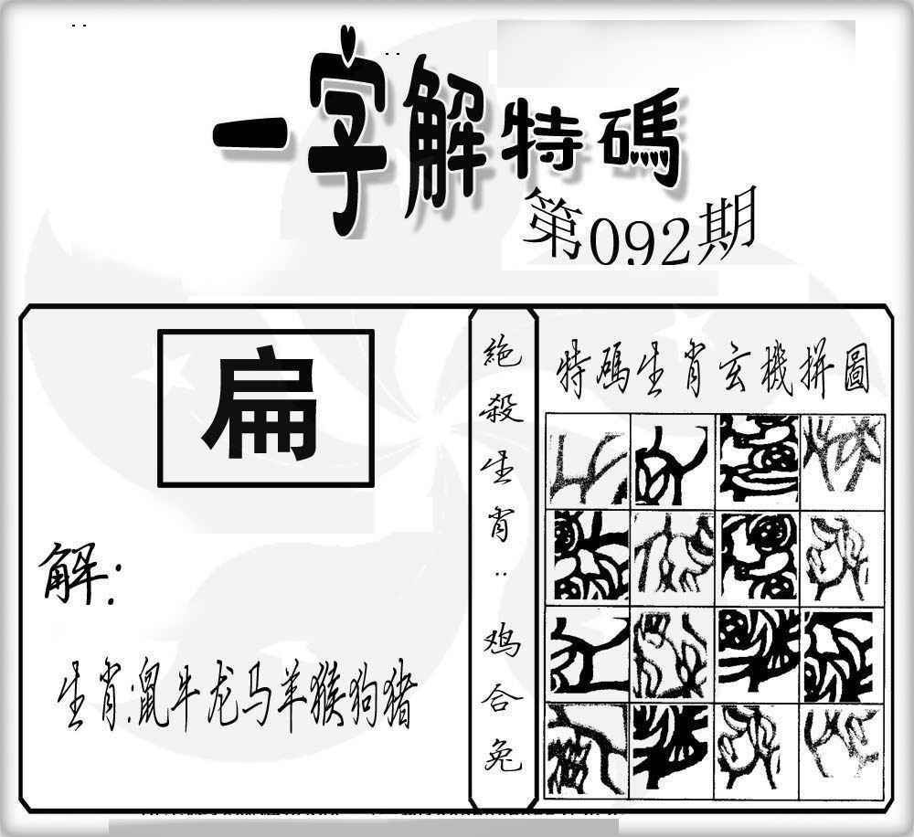 092期:一字解特码