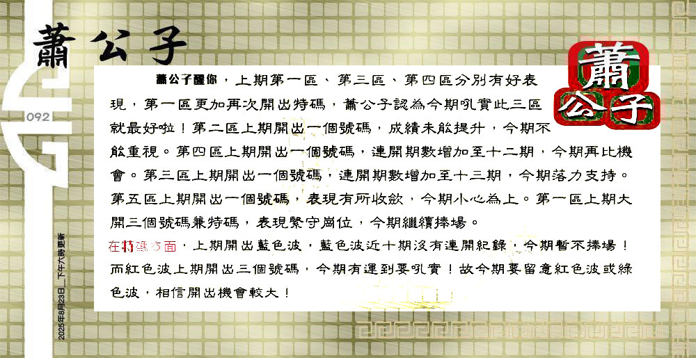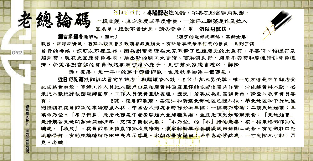 092期:六合皇金句/老总论码/萧公子/林大师/五行夺码/老总信箱截
