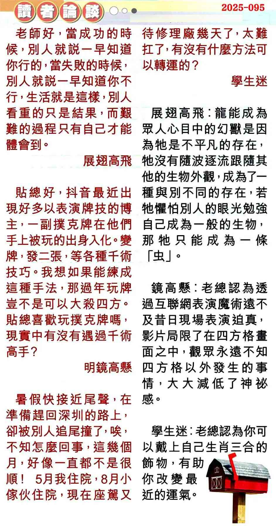 095期:彩民推荐贴信读者论坛