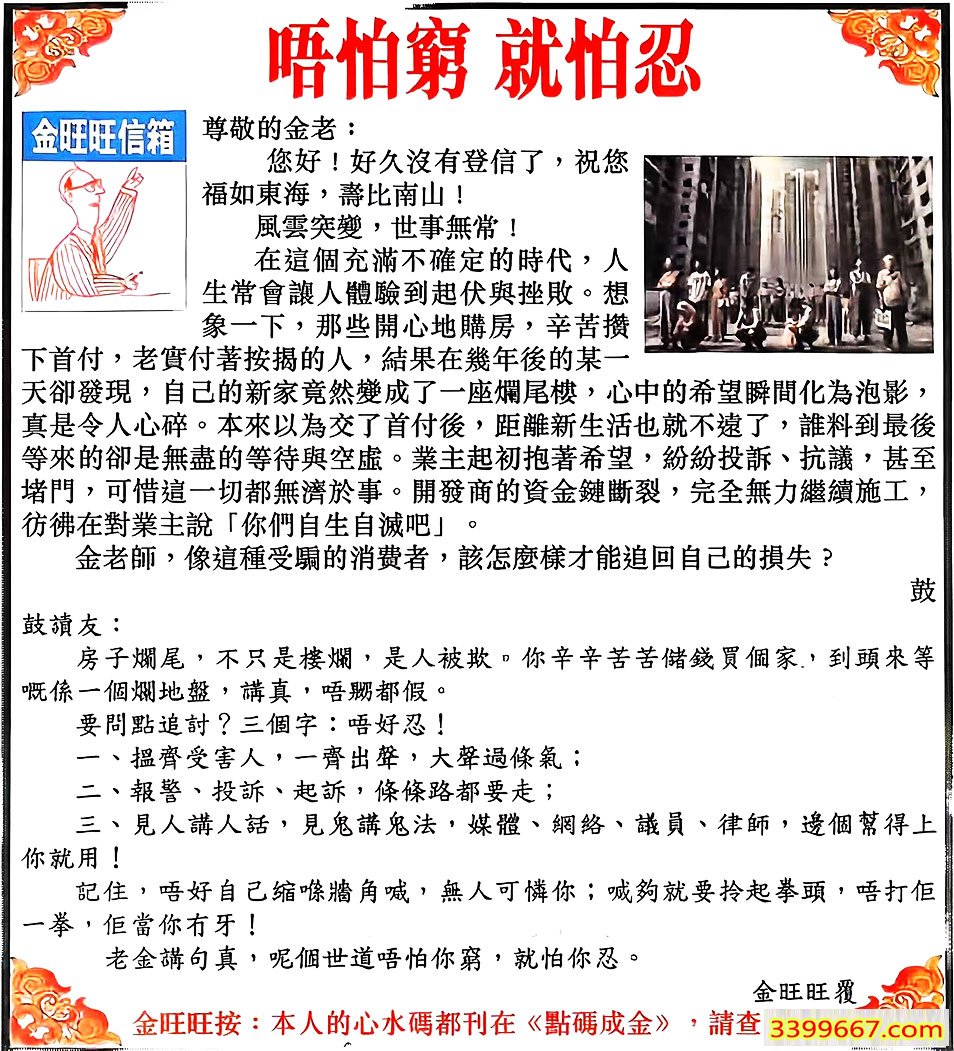101期:金旺旺信箱彩民推荐→→《唔怕窮 就怕忍》