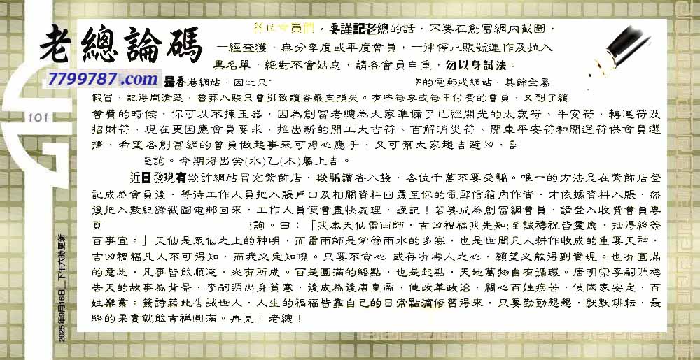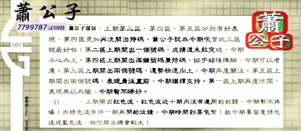 101期:老总论码/萧公子/林大师/五行夺码