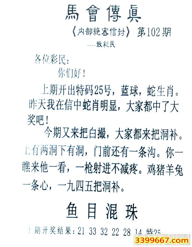 102期:首发推荐:≮馬會傳眞≯→(香港正版)