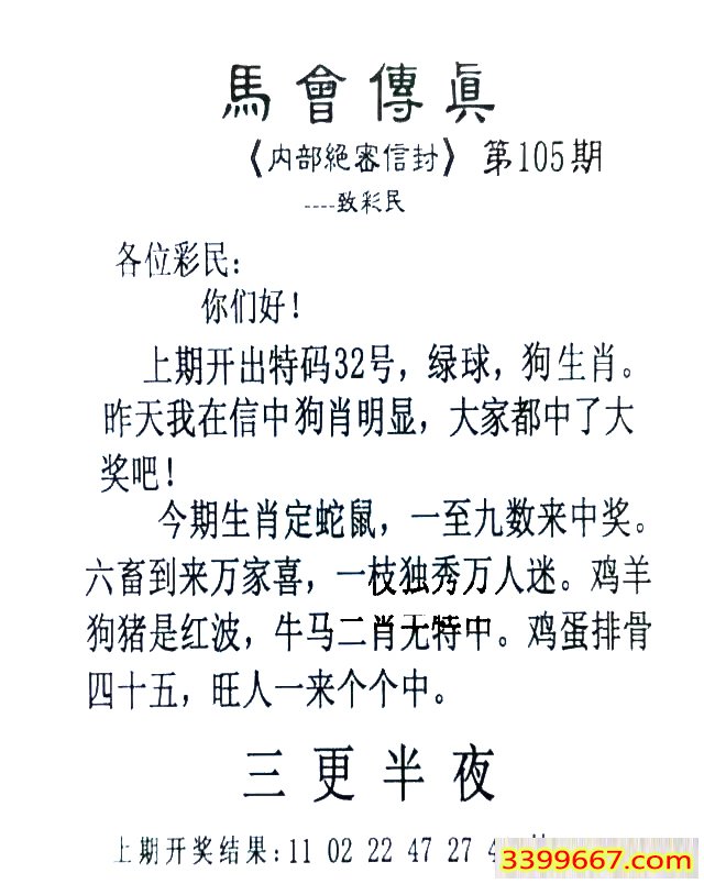 105期:首发推荐:≮馬會傳眞≯→(香港正版)