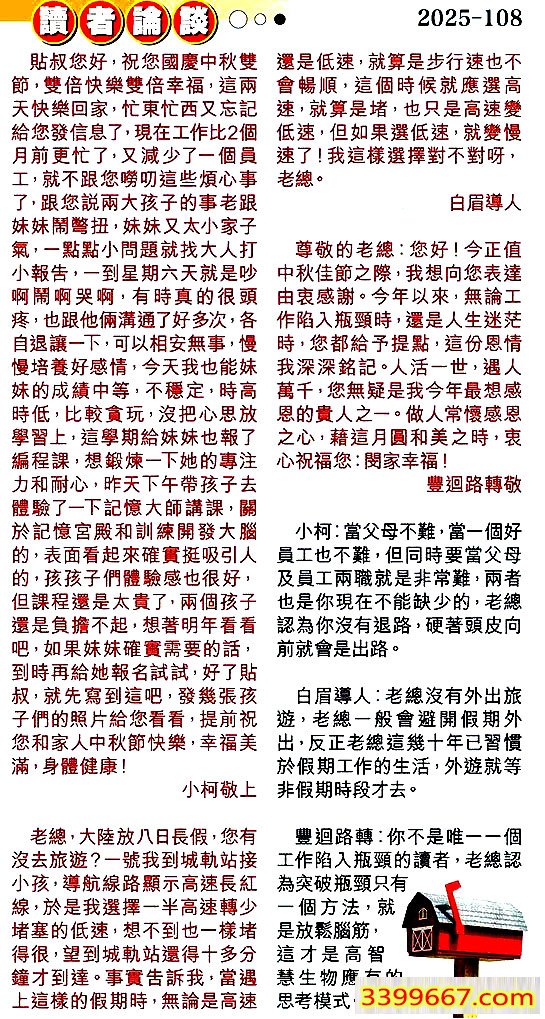 108期:彩民推荐〖貼信讀者論壇〗