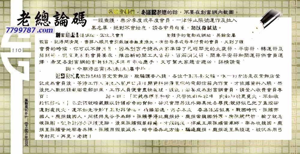 110期:六合皇金句/老总论码/萧公子/林大师/五行夺码/老总信箱截