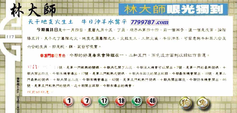 117期:六合皇金句/老总论码/萧公子/林大师/五行夺码/老总信箱截