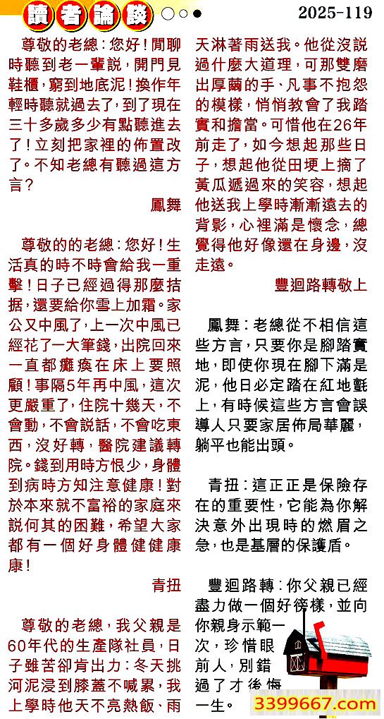 119期:彩民推荐〖貼信讀者論壇〗