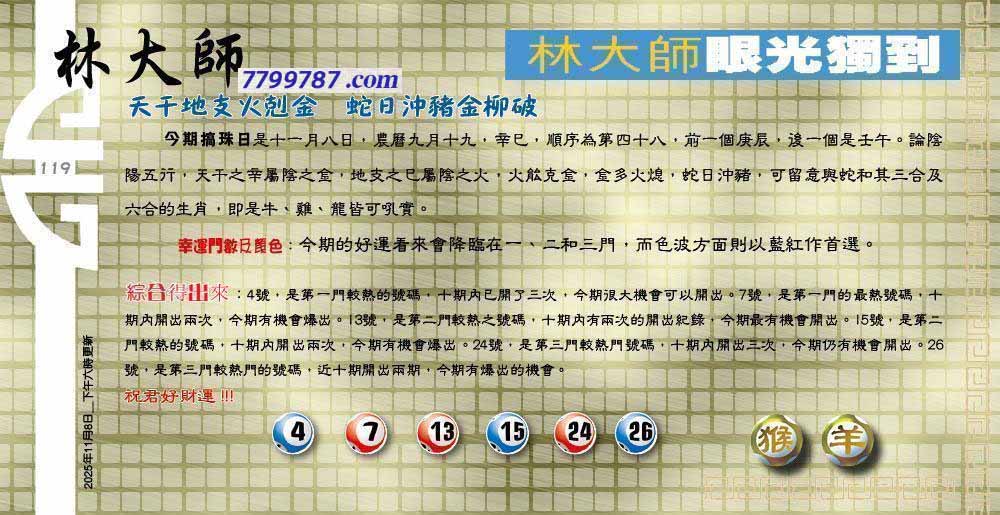 119期:六合皇金句/老总论码/萧公子/林大师/五行夺码/老总信箱截