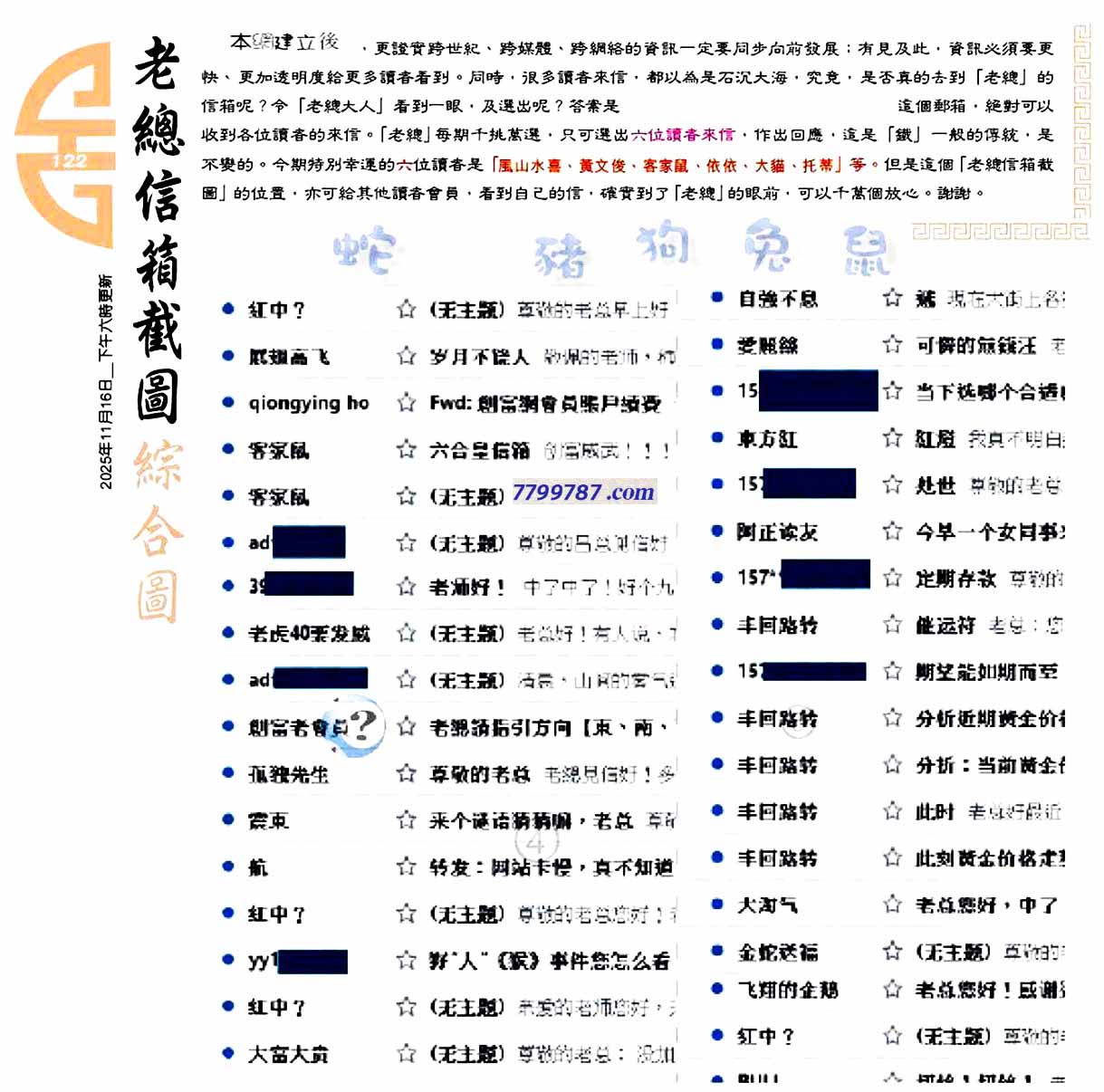 122期:六合皇金句/老总论码/萧公子/林大师/五行夺码/老总信箱截