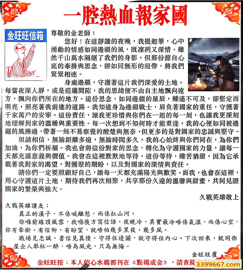 124期:金旺旺信箱彩民推荐→→《一腔熱血報家國》