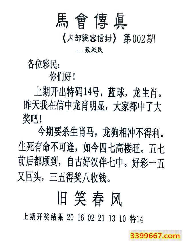 002期:首发推荐:≮馬會傳眞≯→(香港正版)