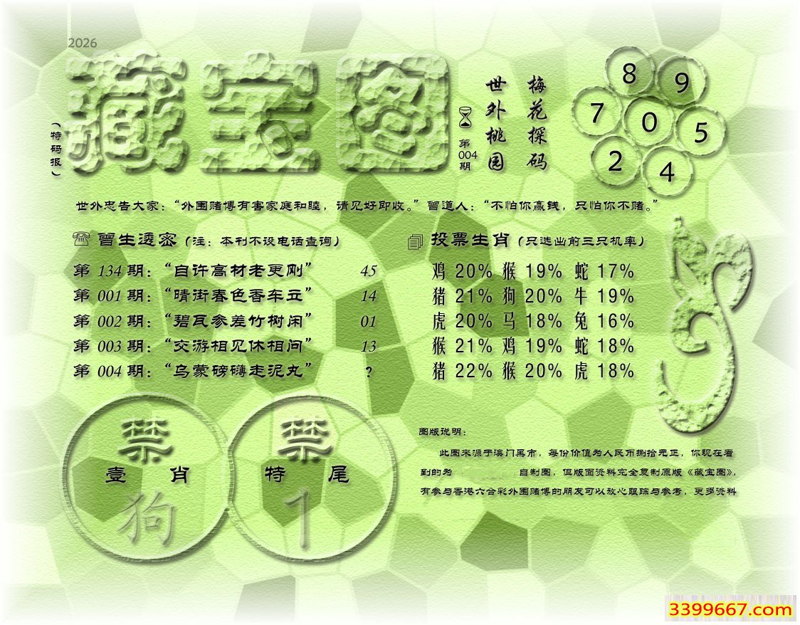 004期藏寶圖 新:天教滴入群花苑 老:乌蒙磅礴走泥丸 禁:狗 禁:1尾