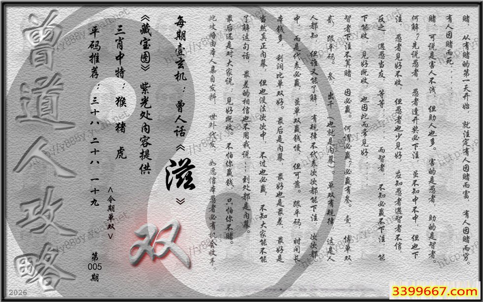 005期藏寶圖 新:倚阁尘消玉树空 老:郑虔自笑穷耽酒 禁:蛇 禁:8尾 玄機字:《滋》